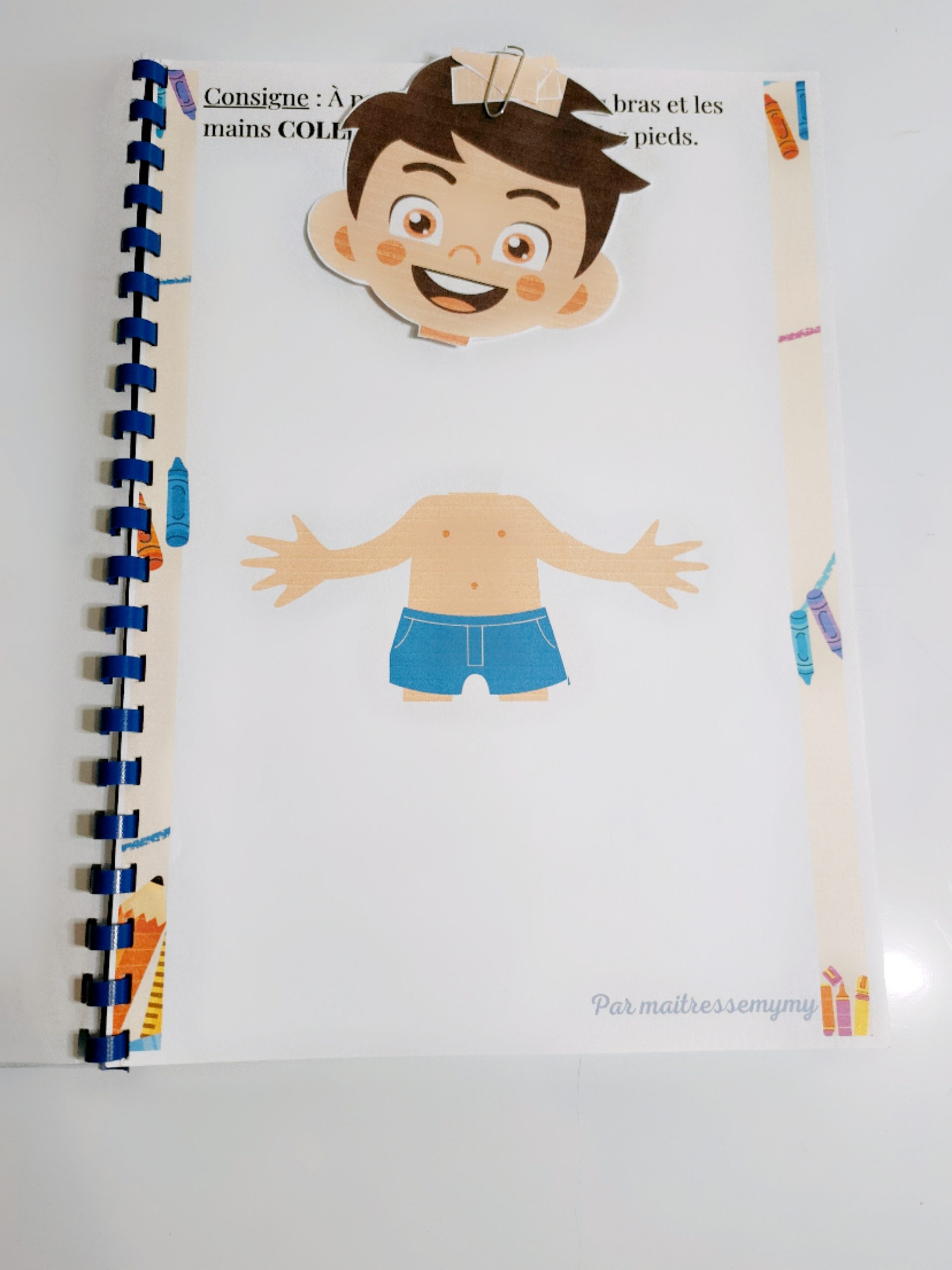 Un livret avec les différentes parties du corps humain à positionner puis coller pour avoir une trace de son premier bonhomme !